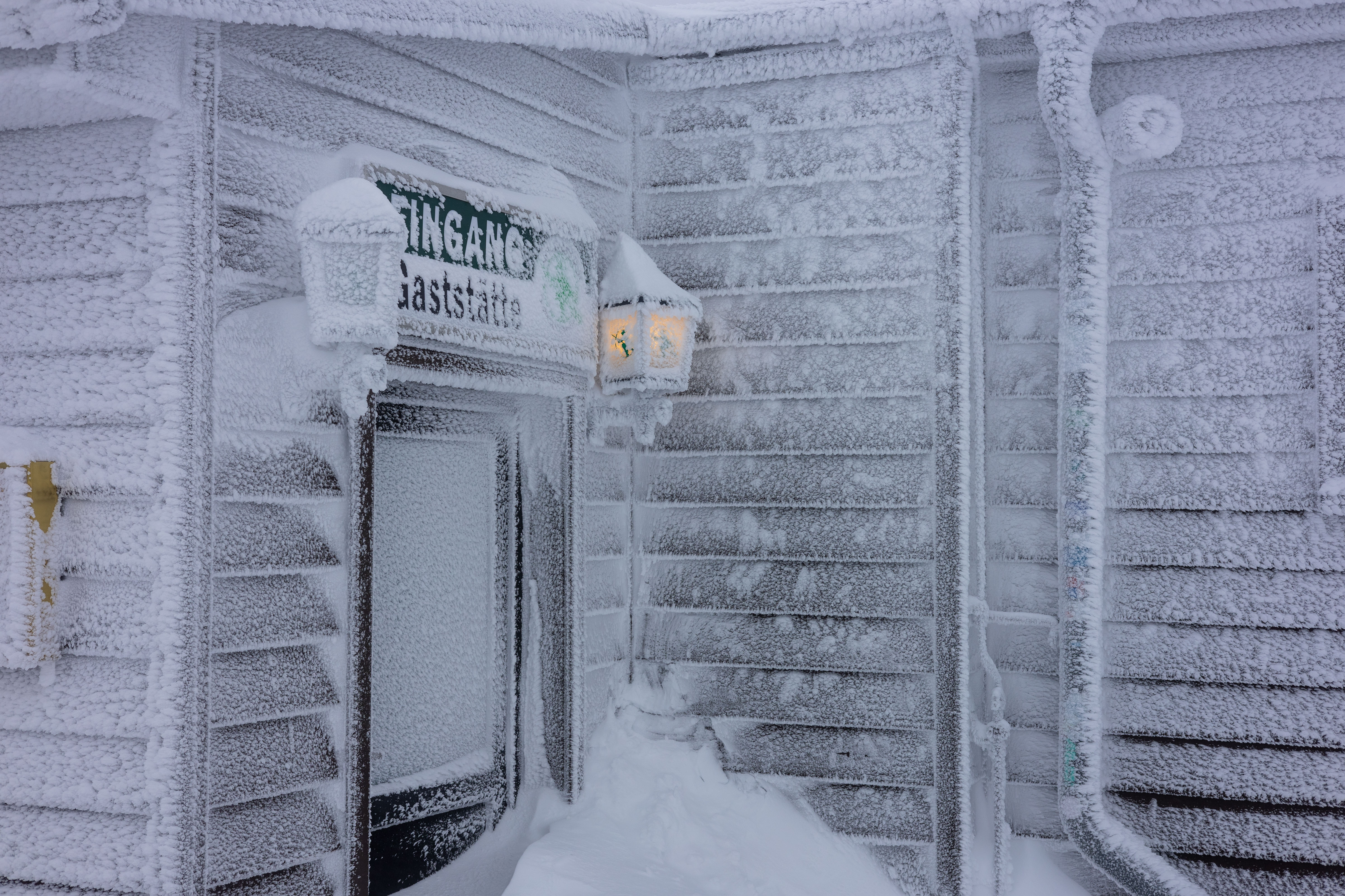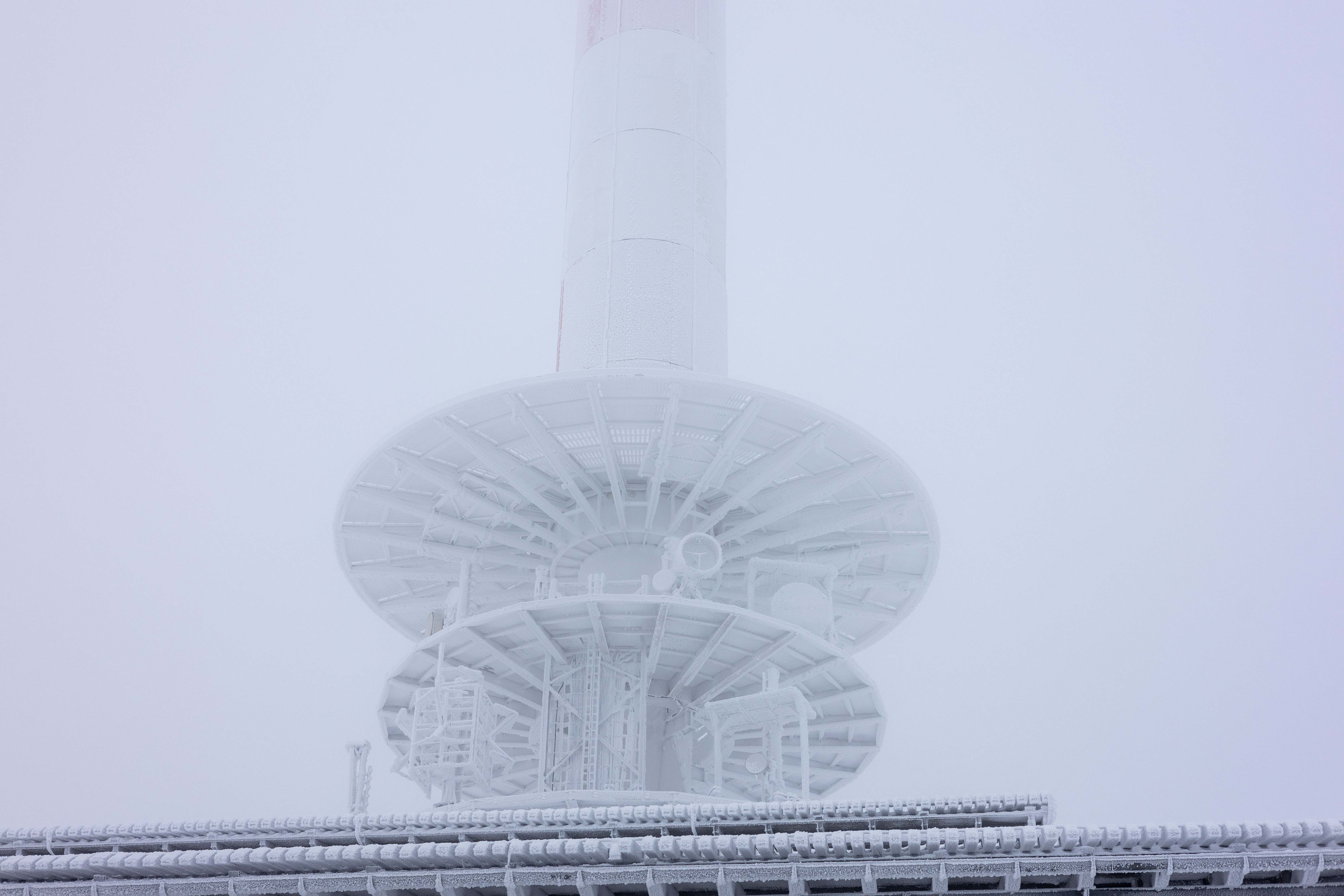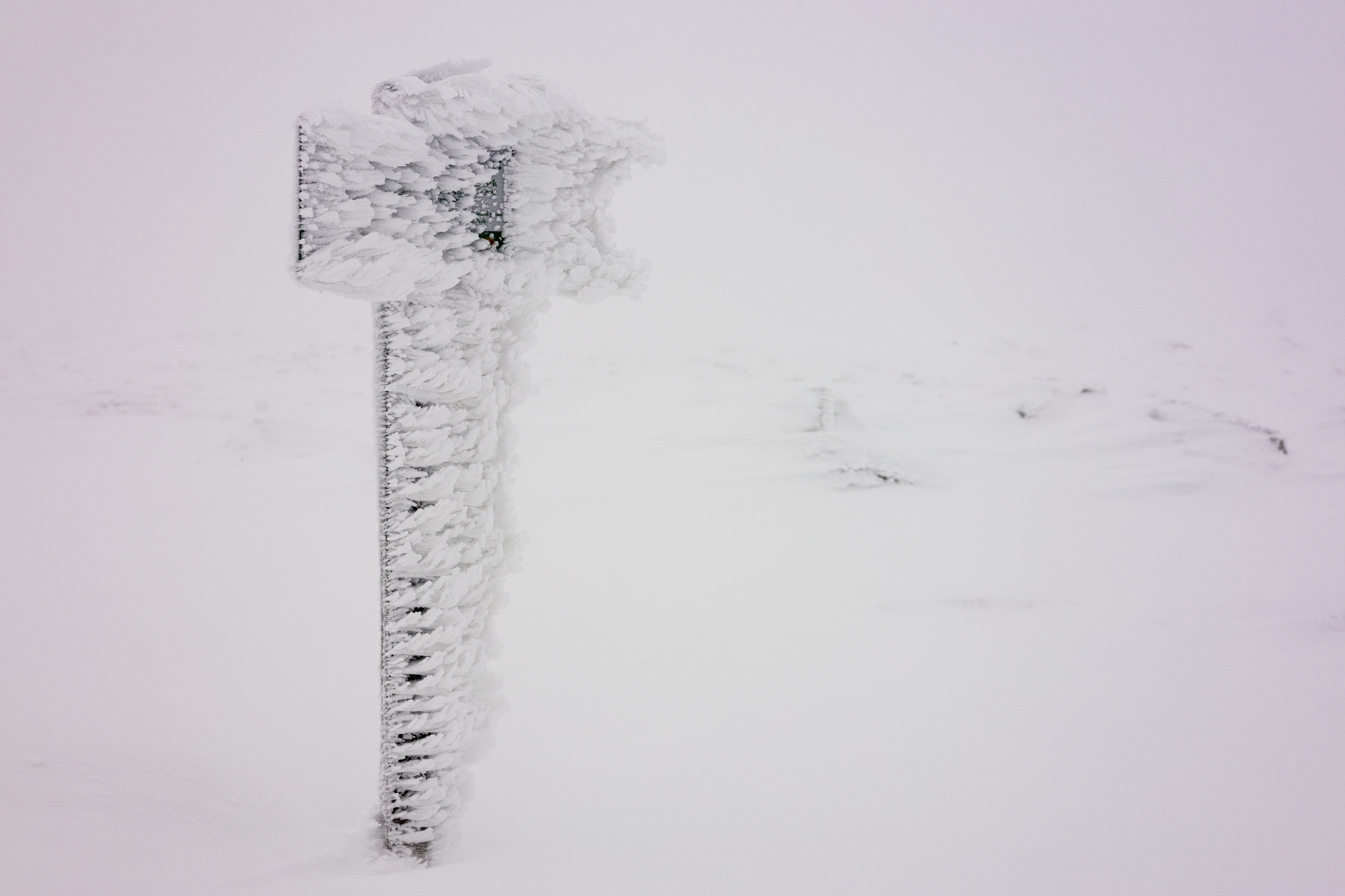 A close-up view of a frozen metal railing, adorned with icicles, is captured in a serene winter scene. The railing, covered in a thick layer of ice, is the central focus of the image. The icicles, in various shapes and sizes, are scattered across the railing, creating a sense of depth and texture. The background, blurred and indistinct, provides a stark contrast to the intricate details of the railing. The image does not contain any discernible text or countable objects. The relative positions of the icicles vary, with some appearing closer to the viewer and others further away. The image does not provide any information about the time of day or the location. The image is a still life, capturing a still moment in a winter landscape.