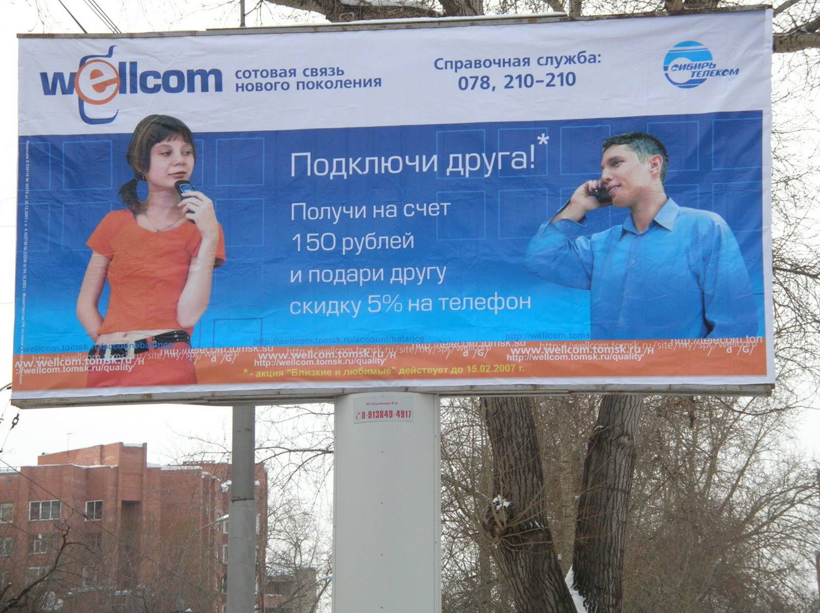 A large billboard advertising the University of Michigan's health insurance program is displayed on a pole. The billboard features two individuals, a man and a woman, engaged in conversation on their cell phones. The billboard also includes information about the health insurance program, including a call to action for individuals to sign up.